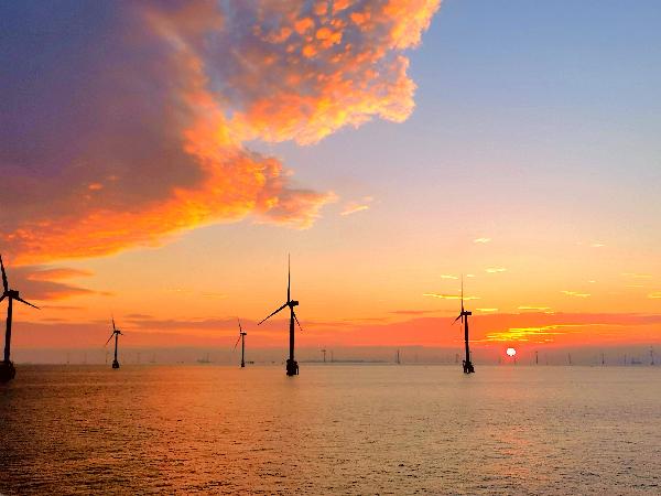 傍晚時分的海上風機